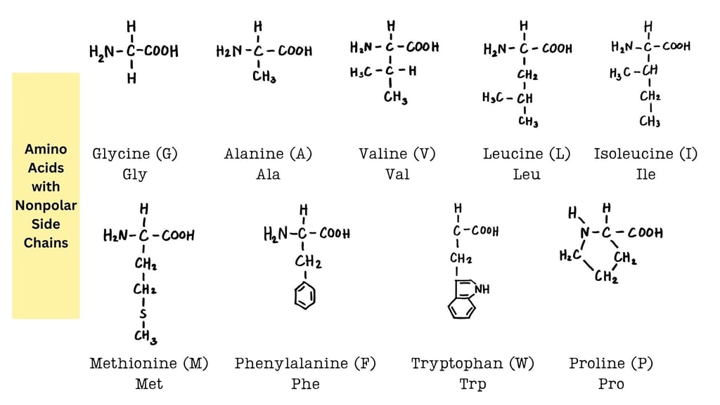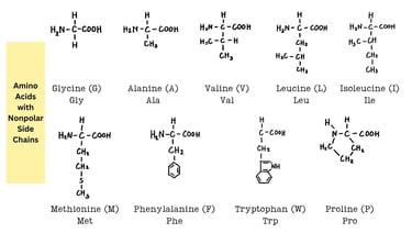 Examples: Glycine, Alanine, Valine, Leucine, Isoleucine.