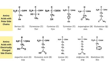 Examples: Aspartic acid, Glutamic acid, Asparagine, Glutamine.