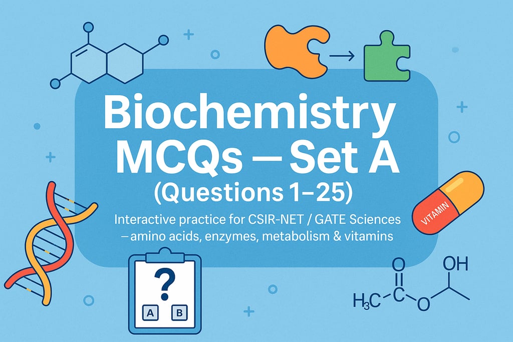 Biochemistry MCQs (SET 1) — 25 Practice Questions with Answers and Explanations