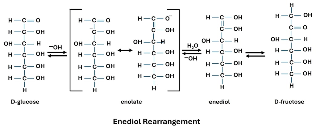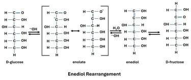 Both analytically and physiologically, enolization is important. Similar enediol intermediates are produced in live systems during the isomerization of glucose-6-phosphate to fructose-6-phosphate by enzymes during glycolysis and gluconeogenesis. In the lab, enolization contributes to several side reactions, including the browning or caramelization of sugars in alkaline environments, and explains the reducing tendency of ketoses. Students who comprehend enolization are better able to relate the reactivity of carbohydrates to metabolic processes and analytical procedures in biochemistry.