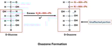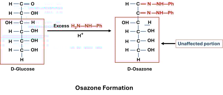 Osazone Formation – Forms characteristic needle-shaped crystals for sugar identification.