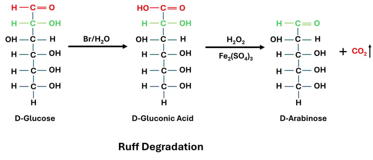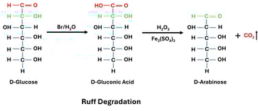 Ruff Degradation – Step-down reaction shortening aldose chain by one carbon.