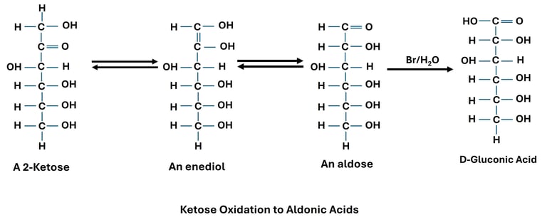 Normally, ketones are resistant to oxidation. However, in alkaline medium, ketoses undergo enolization to form aldose intermediates, which can then be oxidized.