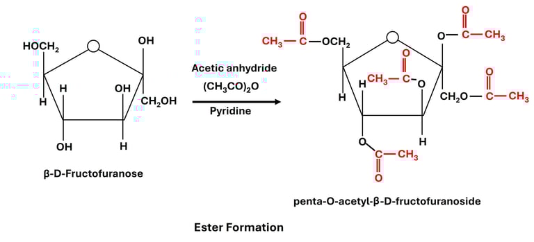 Reaction: Carbohydrate hydroxyl groups react with acids or acid anhydrides to form esters.