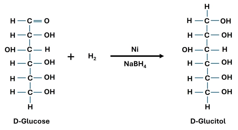 Reduction Reactions – Convert carbonyl groups to alcohols (e.g., formation of alditols like sorbitol).