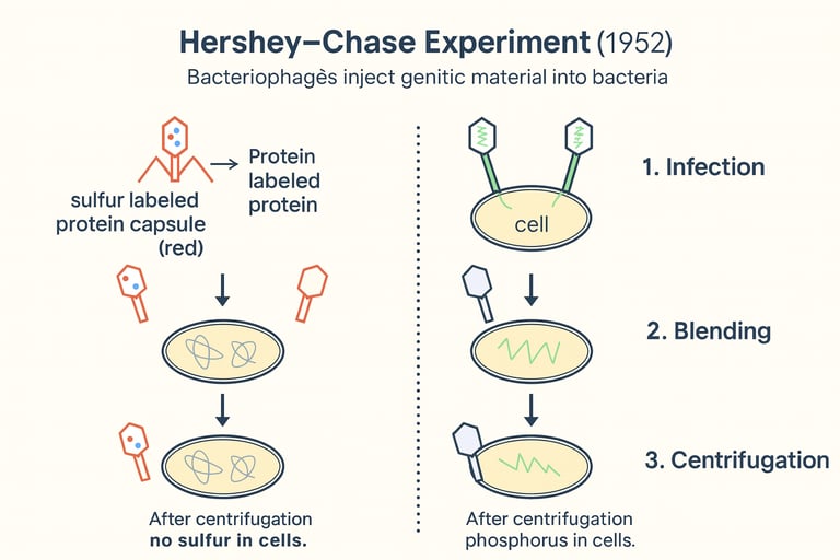 The Hershey and Chase experiment was a 1952 study that proved DNA is the genetic material, not protein