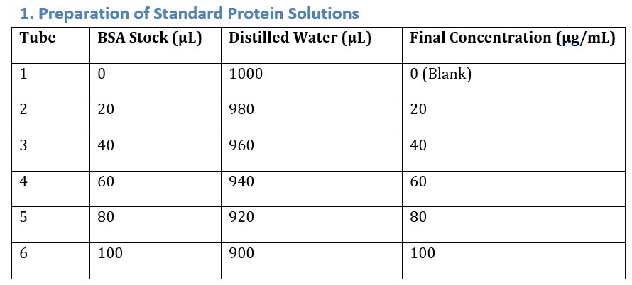 Proteins are considered essential biomolecules that perform structural, catalytic, transport, and regulatory functions in living organisms. Accurate estimation of protein concentration is required in biochemical, molecular biology, and biotechnological experiments, including enzyme assays, protein purification, and diagnostic studies.