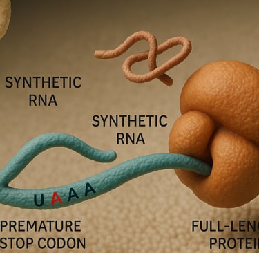 description" content="Explore how synthetic RNA tools enable readthrough of premature stop codons, restoring protein function in nonsense mutations and opening a scalable platform for genetic therapies.