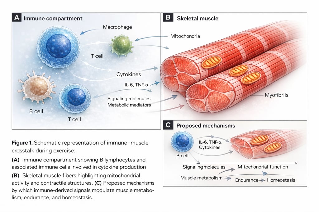Recent findings reported in Nature suggest that exercise performance is not solely governed by muscular and metabolic systems but is also influenced by the immune system. This article examines the emerging role of B lymphocytes in regulating skeletal muscle function, highlighting immune–metabolic interactions that may shape endurance, fatigue, and physiological adaptation.